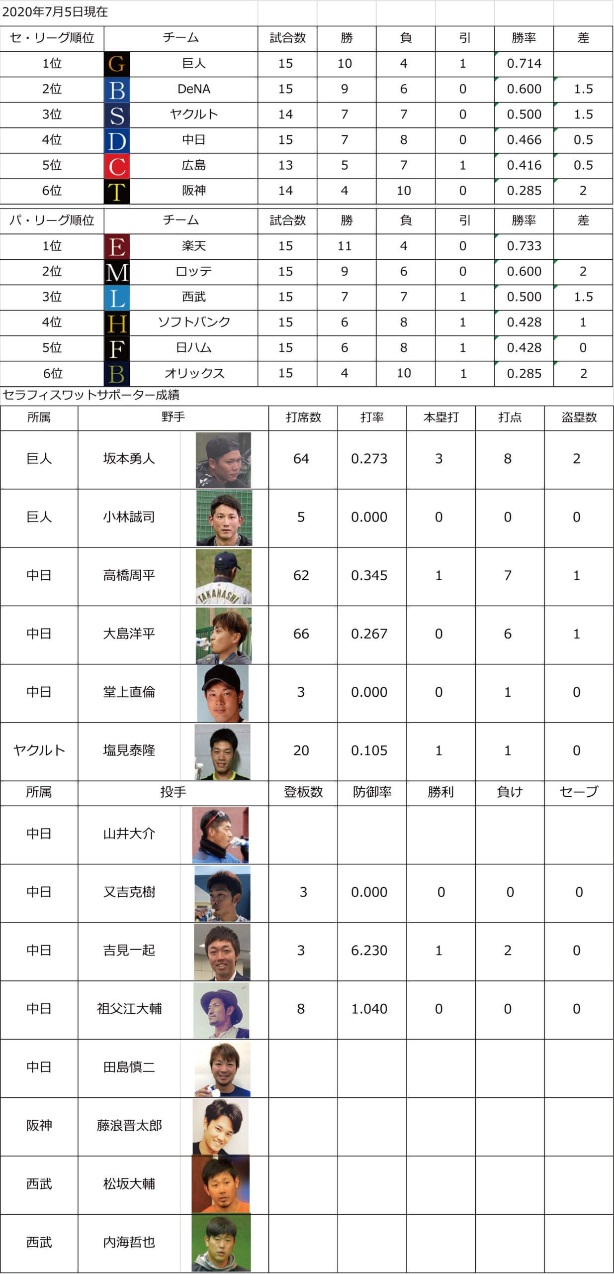 プロ野球中間報告20200705