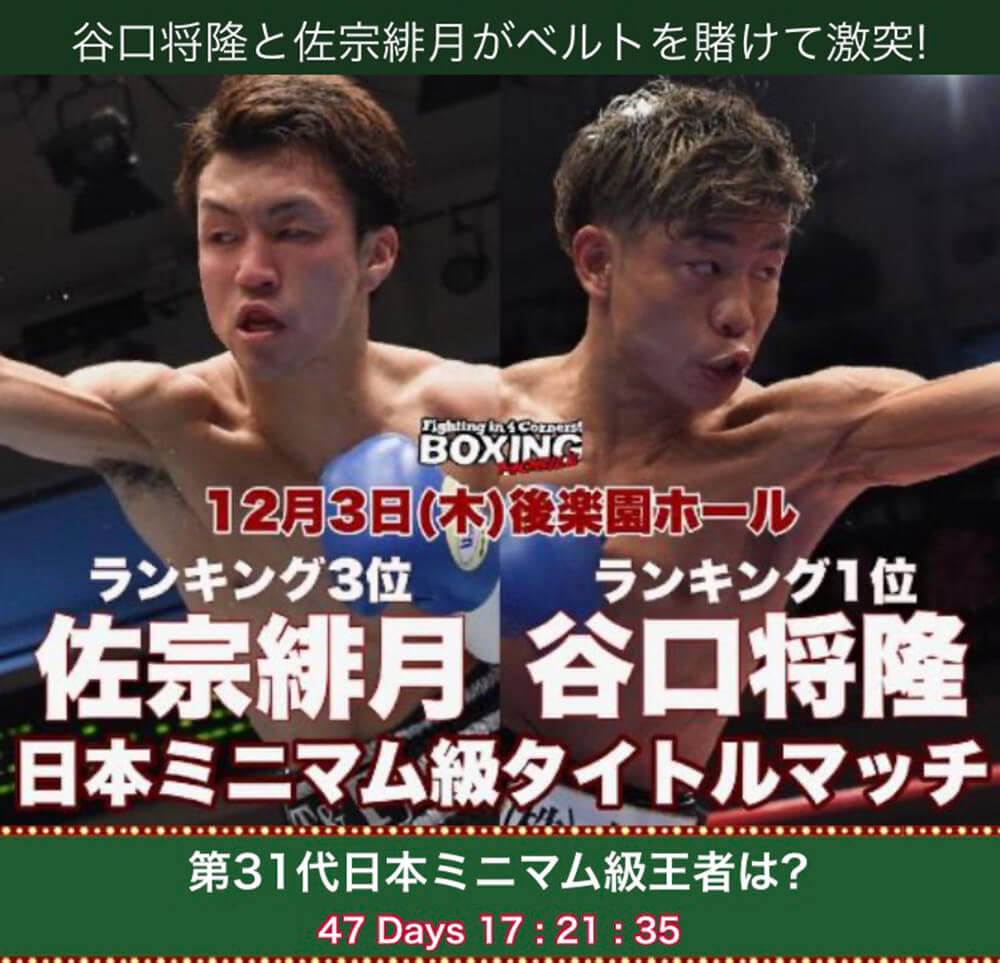 12月3日(木)後楽園ホール 日本ミニマム級タイトルマッチです。