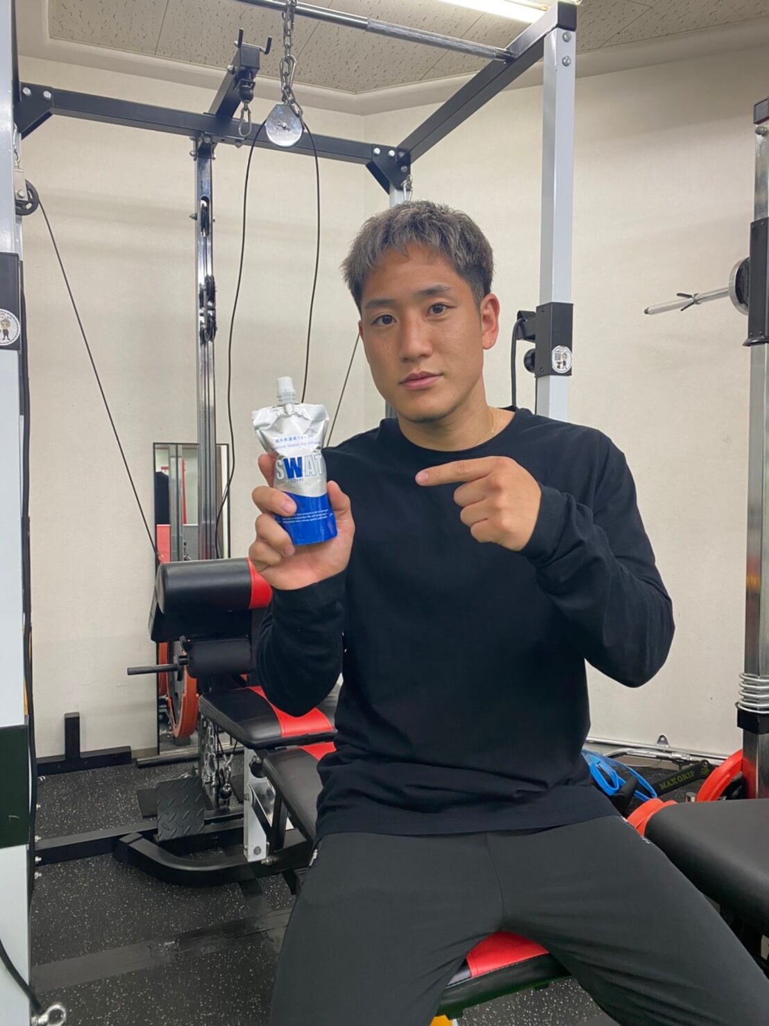 林健太選手「普通の水と違ってトレーニング中に飲んでもお腹にたまらないのでトレーニングに集中しやすい感覚があります!自分ではトレーニング中が一番最適です!!」