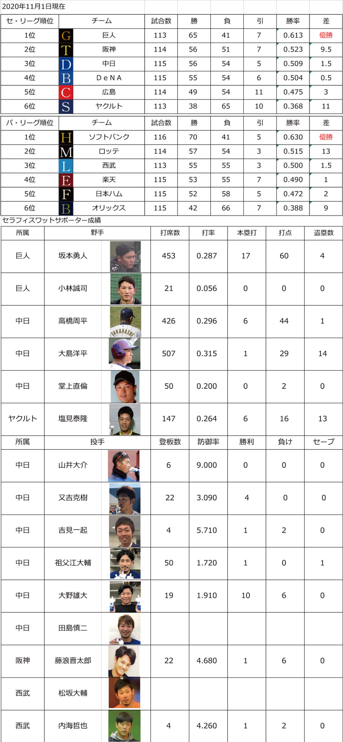 プロ野球各リーグ、及び、セラフィスワットサポーター各位の中間報告です。